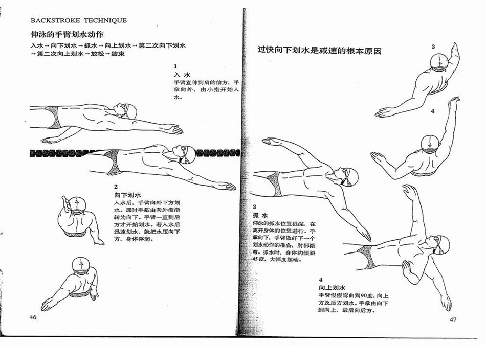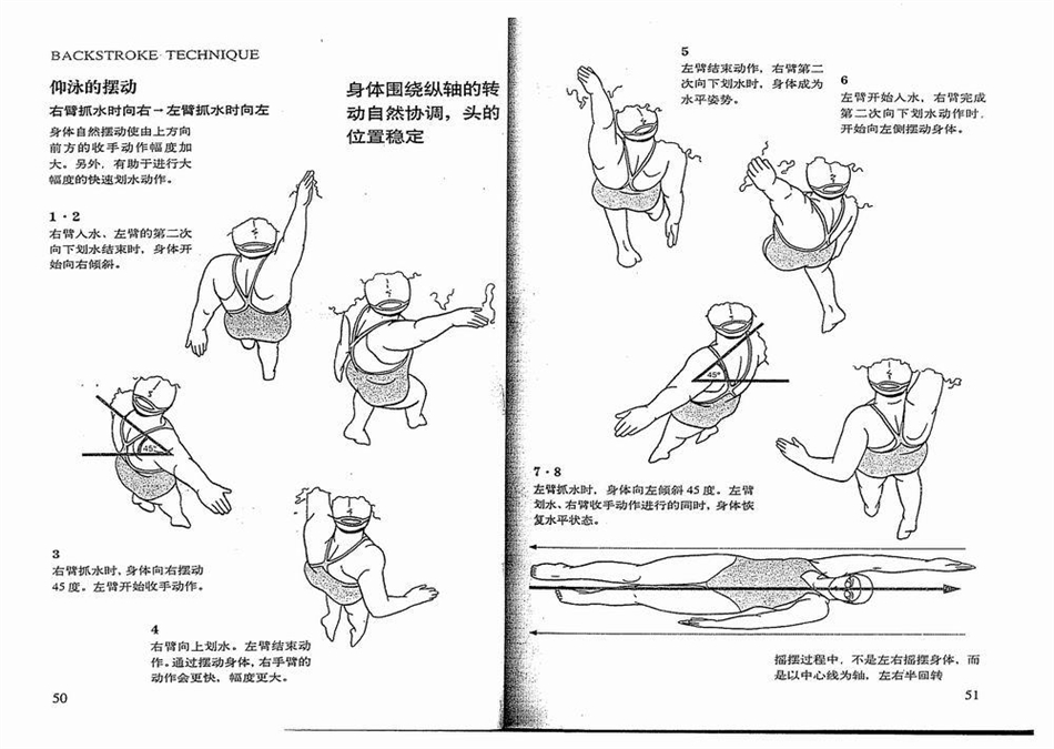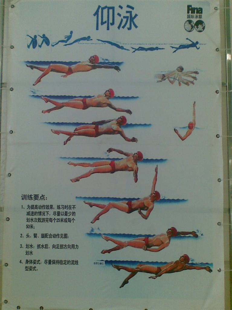仰泳技术由于头部露出水面,呼吸方便;躺在水面上,比较省力。因此深受中老年人和体质较弱者喜爱。